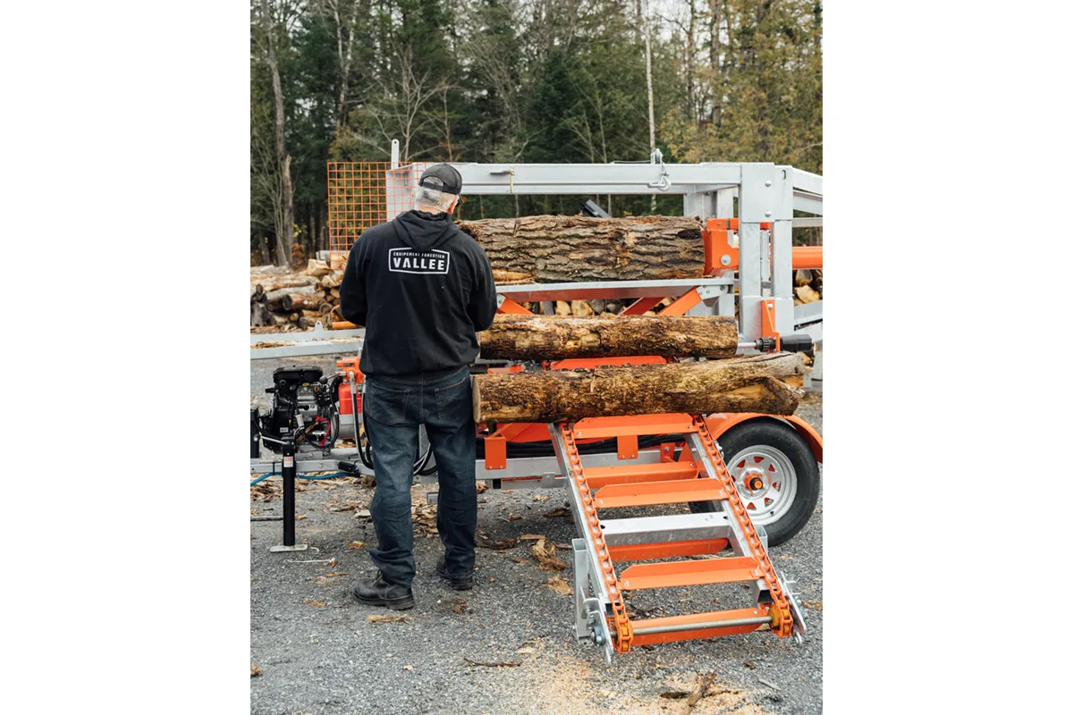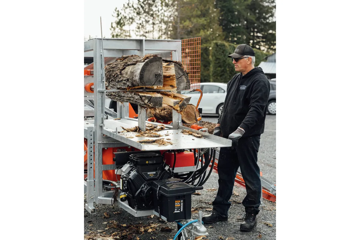 • Chain-feed conveyor: automates log feeding for smooth production flow